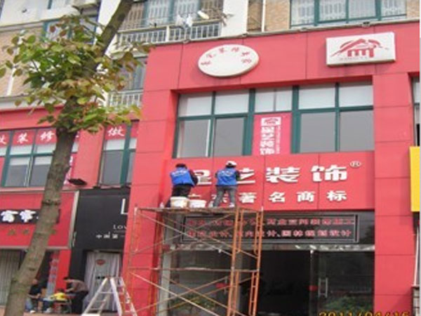 迪邦保潔公司人員正在為“星藝裝飾”做招牌清洗、玻璃清洗。
